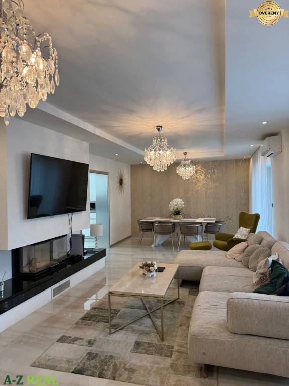 • Veľkorysá obývacia izba s krbom, jedáleň a samostatná kuchyňa plne vybavená spotrebičmi značky Bosch