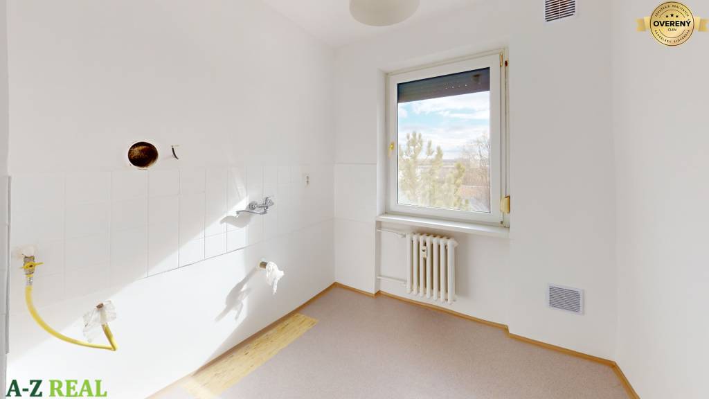 Dispozične ponúka vstupnú chodbu, tri samostatné izby, kuchyňu, kúpeľňu, samostatné WC a zasklenú loggiu prístupnú z obývačky. V izbách sú nové plávajúce podlahy a stierky, v ostatných priestoroch PVC, takže byt je pripravený na finálne dokončenie podľa vlastného vkusu.