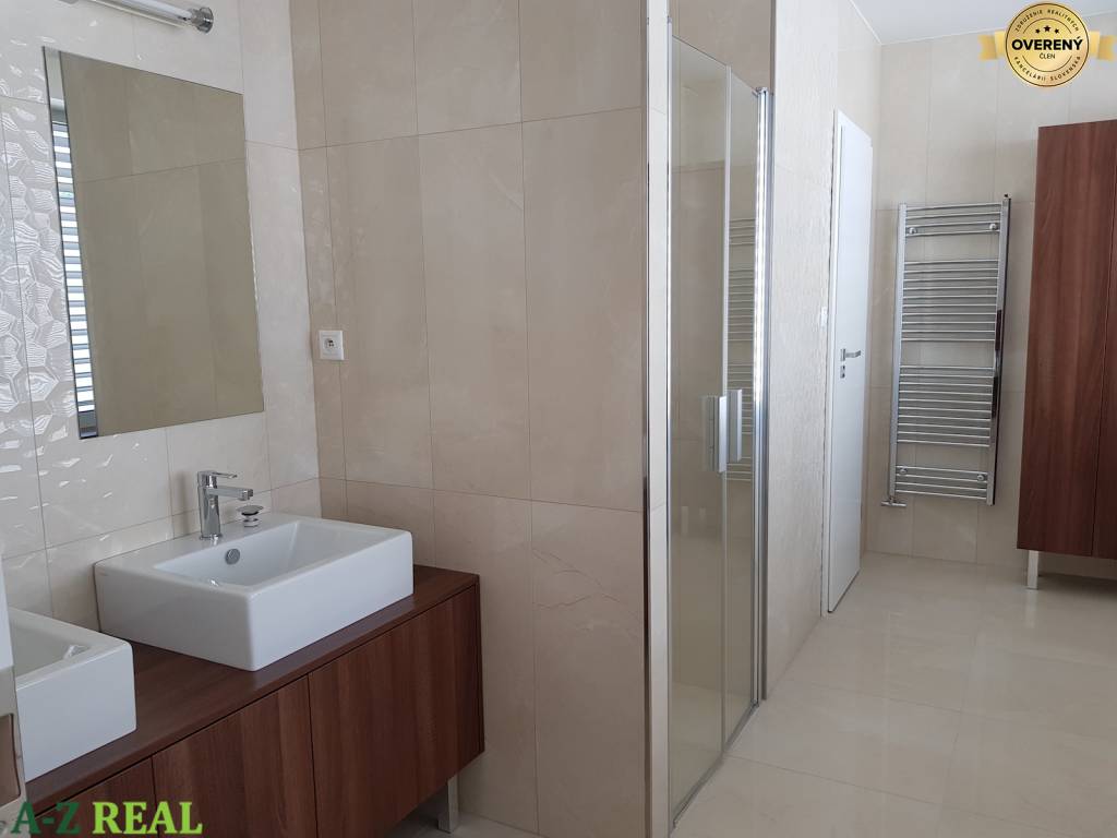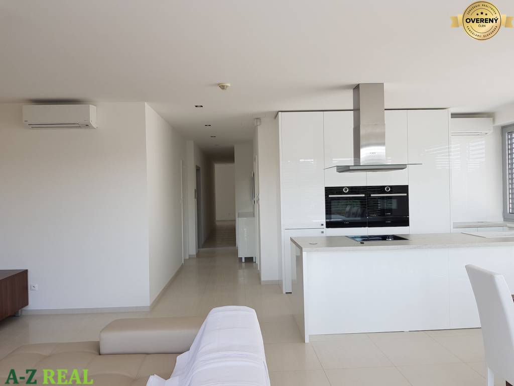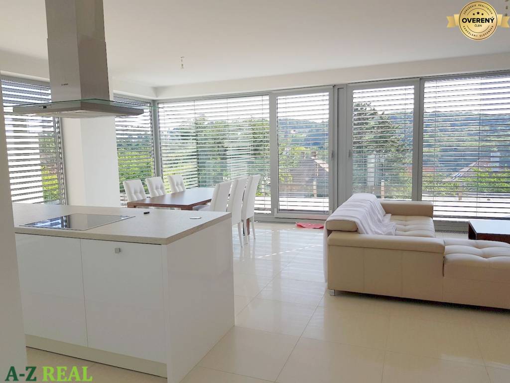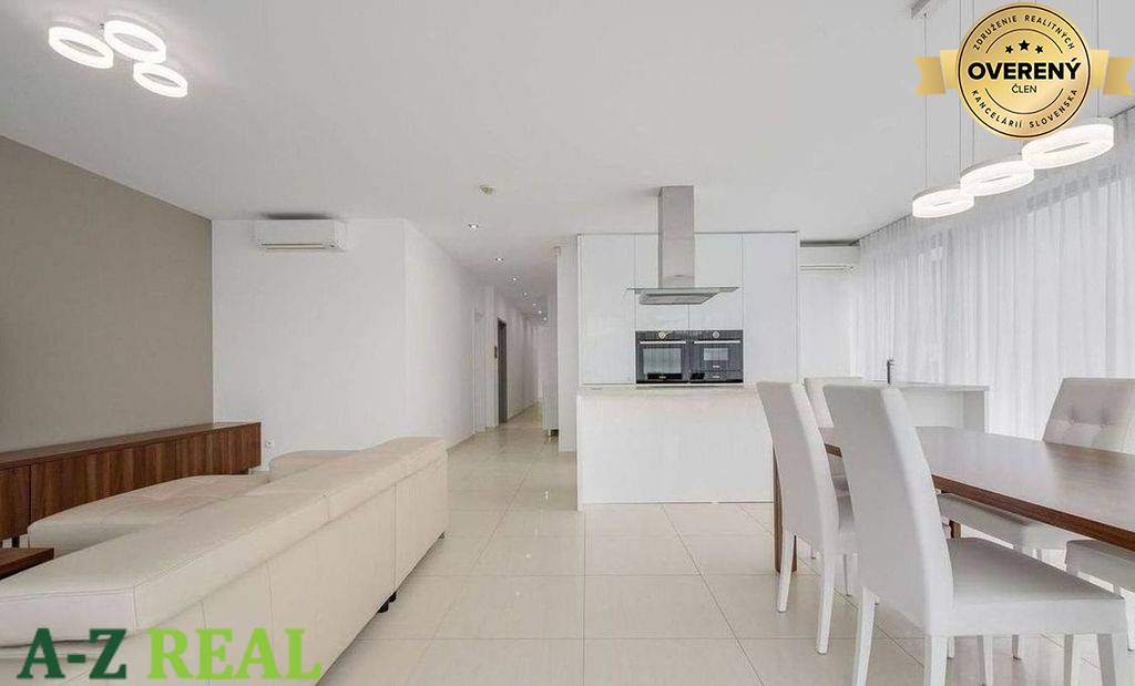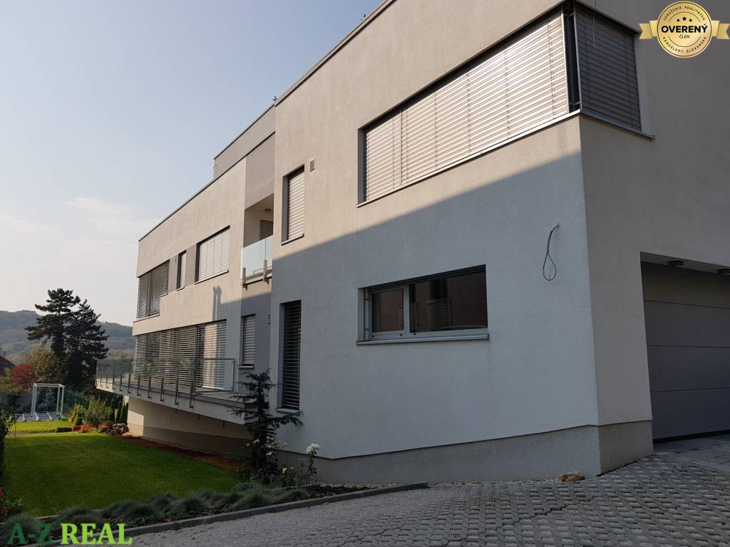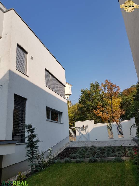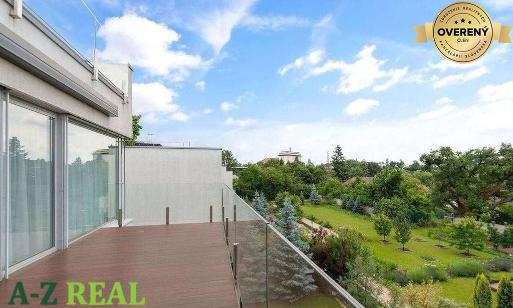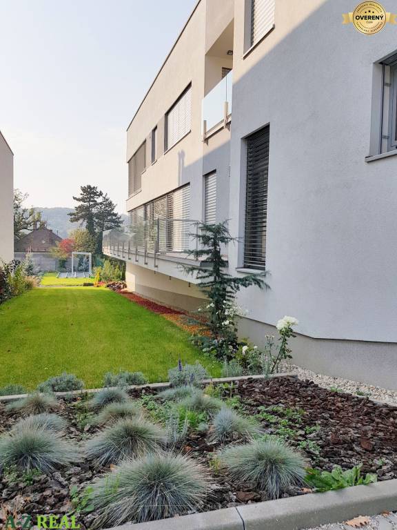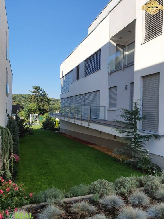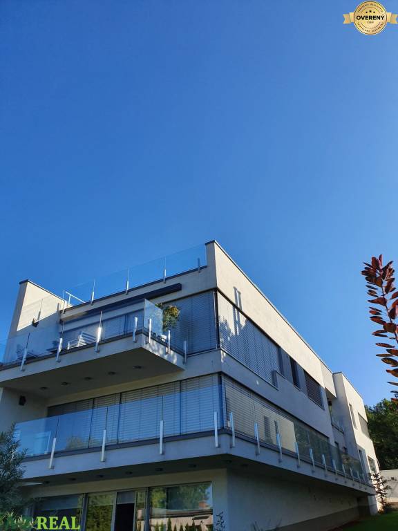 Exkluzívny, slnečný, 5 izbový byt v novostavbe rezidenčného rodinného domu Vila Terézia, určený na dlhodobý nájom, sa nachádza na Tajovského ulici v najlukratívnejšej rezidenčnej zóne Bratislavy v oblasti Slavína, Horského parku a Kalvárie. Preslnený byt je situovaný východo-juhozápadným smerom na miernom svahu Kalvárie s výhľadom do údolia Horského parku. Zo súkromnej lodžie s výmerou 5 m2 je výhľad do bočného dvora, z terasy s rozlohou 15 m2 orientovanej do vnútornej súkromnej záhrady je jedinečný výhľad na údolie a zeleň Horského parku. Byt s úžitkovou plochou 174 m2 a celkovou plochou 194 m2 je situovaný na 2. nadzemnom podlaží rezidenčnej vily postavenej iba s tromi bytmi. Byt sa ponúka zariadený a pozostáva z otvorenej dispozície kuchyne so všetkými zabudovanými spotrebičmi, z jedálenskej a obývacej časti, ďalších štyroch izieb, samostatného šatníka, dvoch kúpeľní s toaletami, z jednej samostatnej kúpeľne a samostatného WC. K bytu prislúcha vlastný priestranný sklad (pivničná kobka) s výmerou 6,50 m2. Súčasťou vybavenia bytu sú klimatizácia, podlahové kúrenie, vstavané skrine a hliníkové okná s externými žalúziami. Byt má vlastný zabezpečovací systém. Slnečné kolektory na ohrev teplej vody výrazne napomáhajú zníženiu nákladov na energie. Parkovanie je zabezpečené na vlastnom dvore a v garáži, ktorá je súčasťou rodinného domu. Veľká vnútorná záhrada s vonkajším záhradným prístreškom s prívodom vody a elektriny, schovaná za domami, vytvára súkromné zázemie na oddych, záhradné grilovanie, bezpečné hry detí spojené s možnosťou zapojiť sa do pestovania a zberu ovocia a zeleniny. Tichá lokalita a výborná dostupnosť do centra mesta (mikrobusom MHD), blízkosť obchodných centier a výborných škôl ponúkajú kvalitné bývanie pre najnáročnejších klientov.
