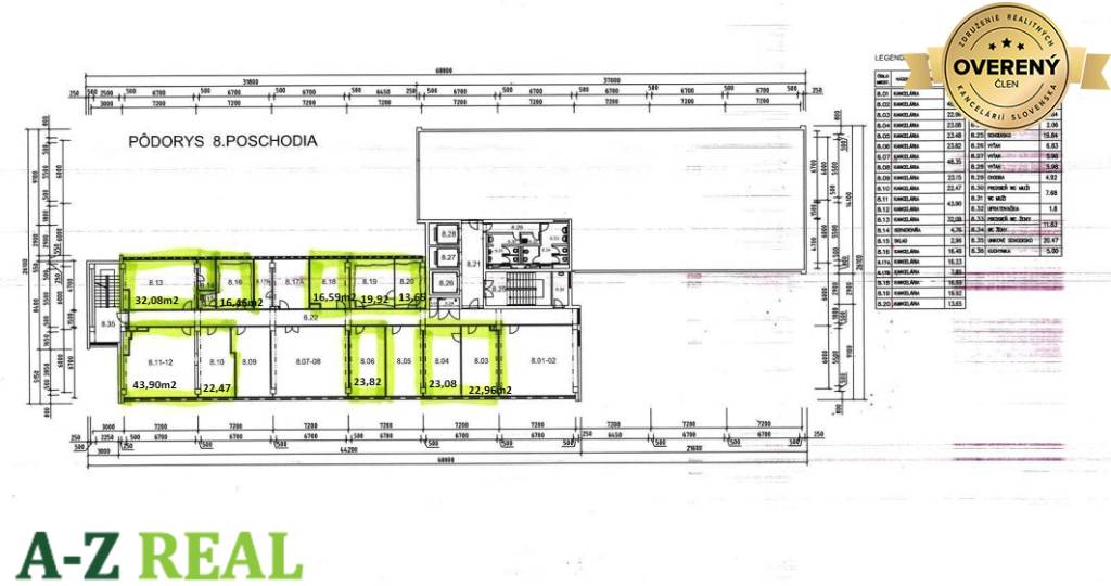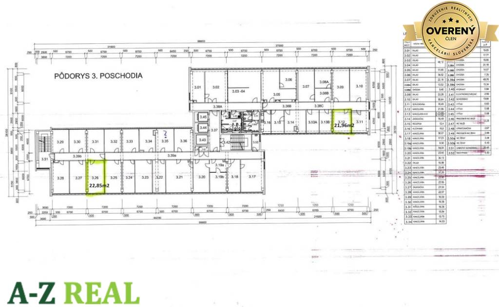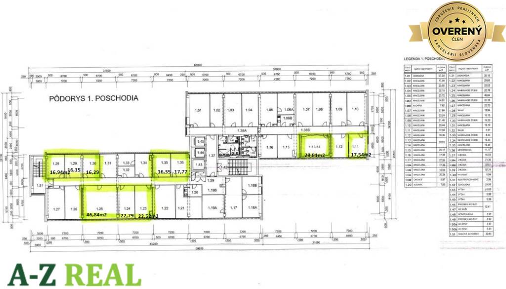 presné výmery voľných priestorov zobrazené na pôdoryse