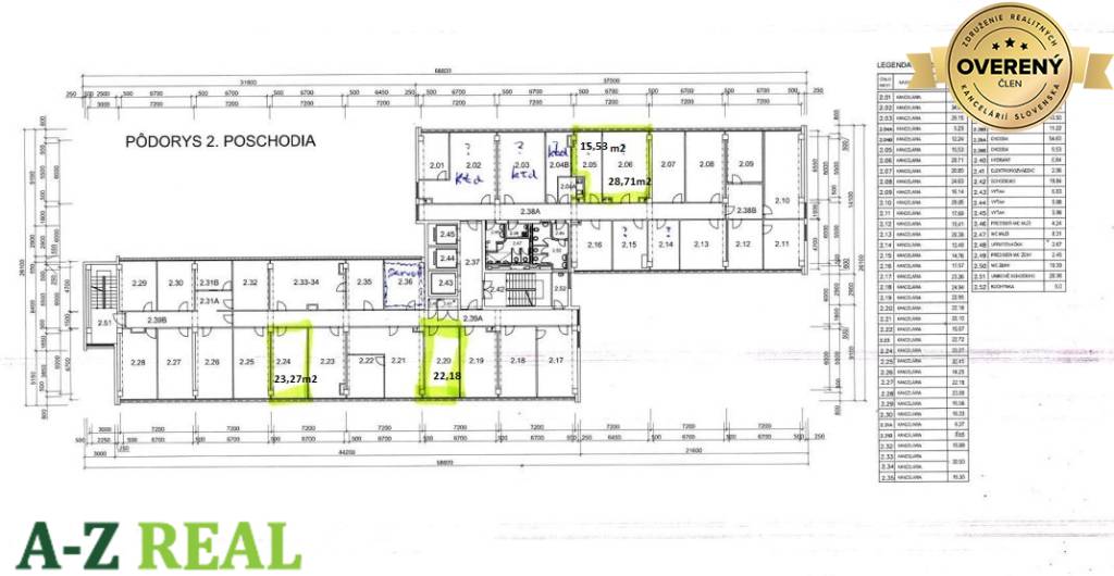 rôzne kancelárie od 11 m2 po celok cca 110 m2