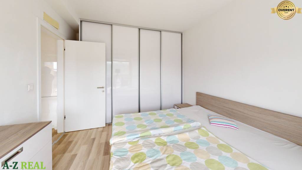 Dispozičné riešenie: zo vstupnej chodby so vstavanými skriňami sa prechádza do priestrannej obývacej miestnosti spojenej s kuchynskou časťou, z obývacej miestnosti sa vchádza do spálne s rolldorom, výstup na balkón je z oboch miestností.
