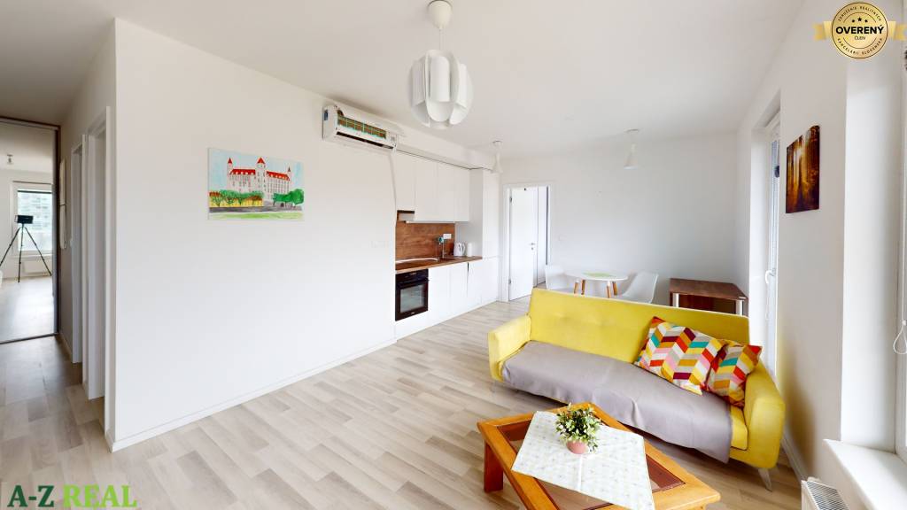 Ponúkame na predaj komfortný klimatizovaný 2 izbový byt s celkovou rozlohou 59 m2, vrátane priestranného balkóna 9,7 m2 a pivnice s rozlohou 2,5 m2.