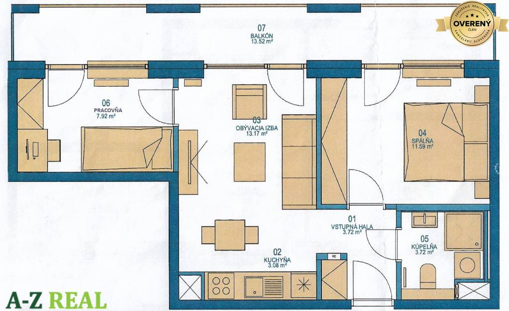 Rozloha bytu je 57 m2, nachádza sa na 4/6 poschodí s výťahom, byt je klimatizovaný a prenajíma sa kompletne zariadený s parkovacím miestom.