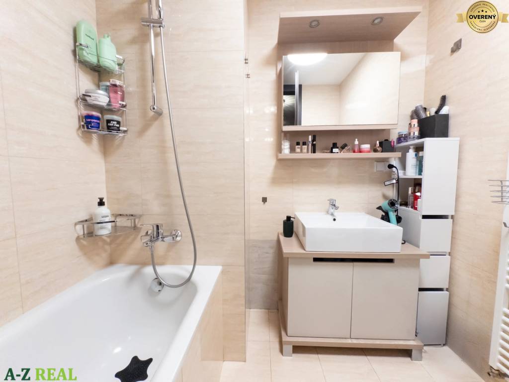 - Sanita: Kúpeľňa disponuje vaňou aj sprchovým kútom.