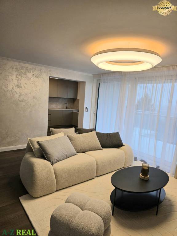 Byt sa prenajíma kompletne zariadený luxusným nábytkom, kuchyňa je vybavená elektrospotrebičmi /práčka, sušička a vstavané kuchynské spotrebiče ako chladnička s mrazničkou, el. rúra, digestor, el. varná platňa, mikrovlná rúra a umývačka riadu/.