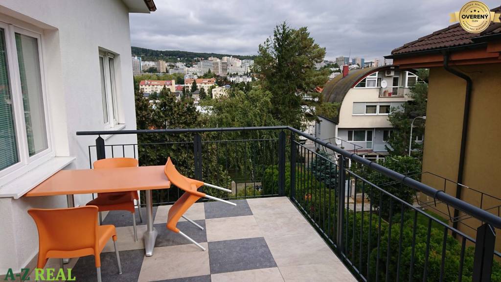 rozloha bytu 135 m2, byt je po kompletnej rekonštrukcií, 2x terasa, 1x kúpeľňa s WC a samostatné WC, krb, nadštandardne vybavený, klimatizácia, tiché prostredie, výhľad na Kolibu, jedno parkovacie miesto v garáži za poplatok za 100 EUR, možnosť parkovania ďalších 2 áut vo dvore, internet a satelitná TV v cene, menšia záhrada, zimná záhrada, sprchový kút s masážnou funkciou,