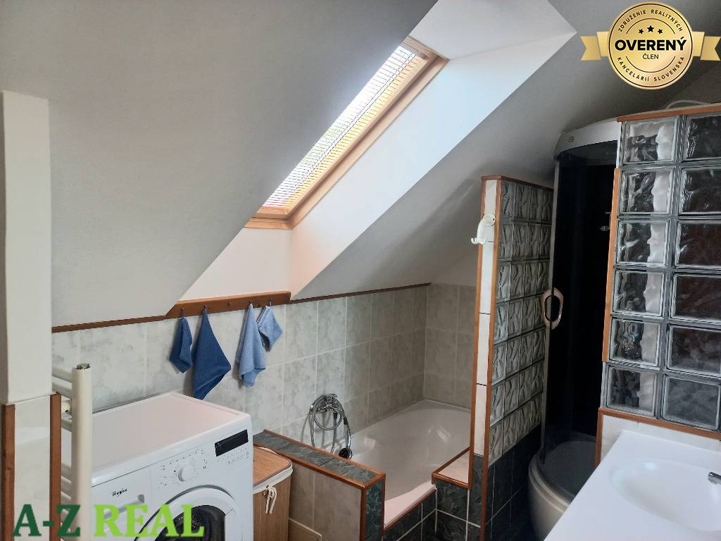 V podkroví je chodba, tri izby, kúpelňa so sprchovým kútom, vaňou a dvojumývadlom. Práčka je súčasťou výbavy kúpelne. Veľká terasa umožňuje krásny výhľad a príjemné