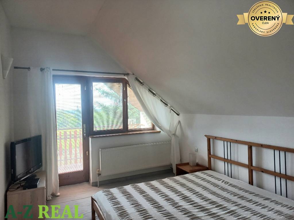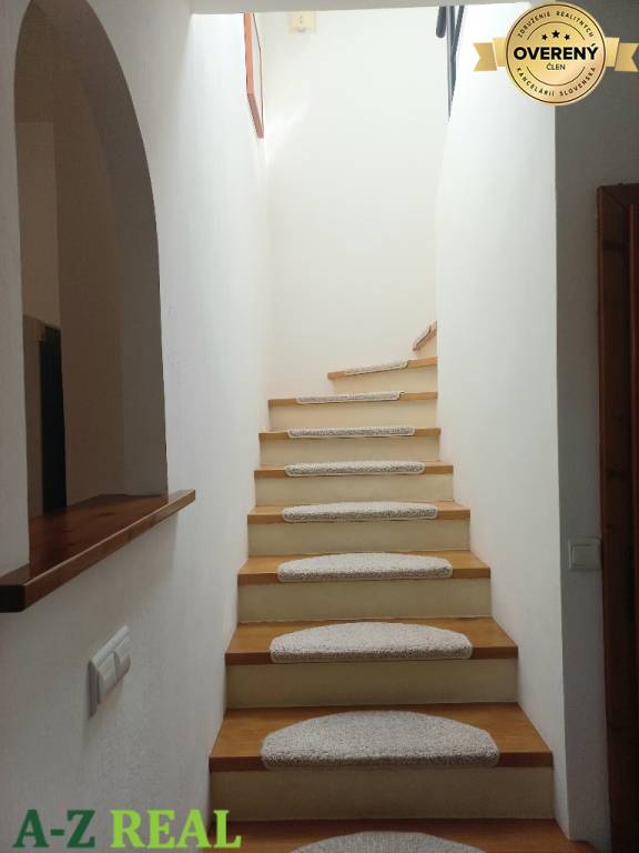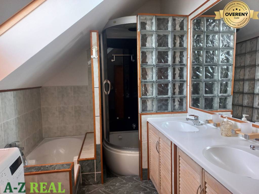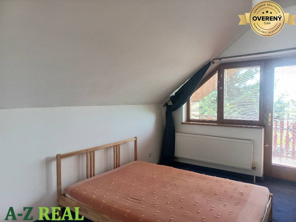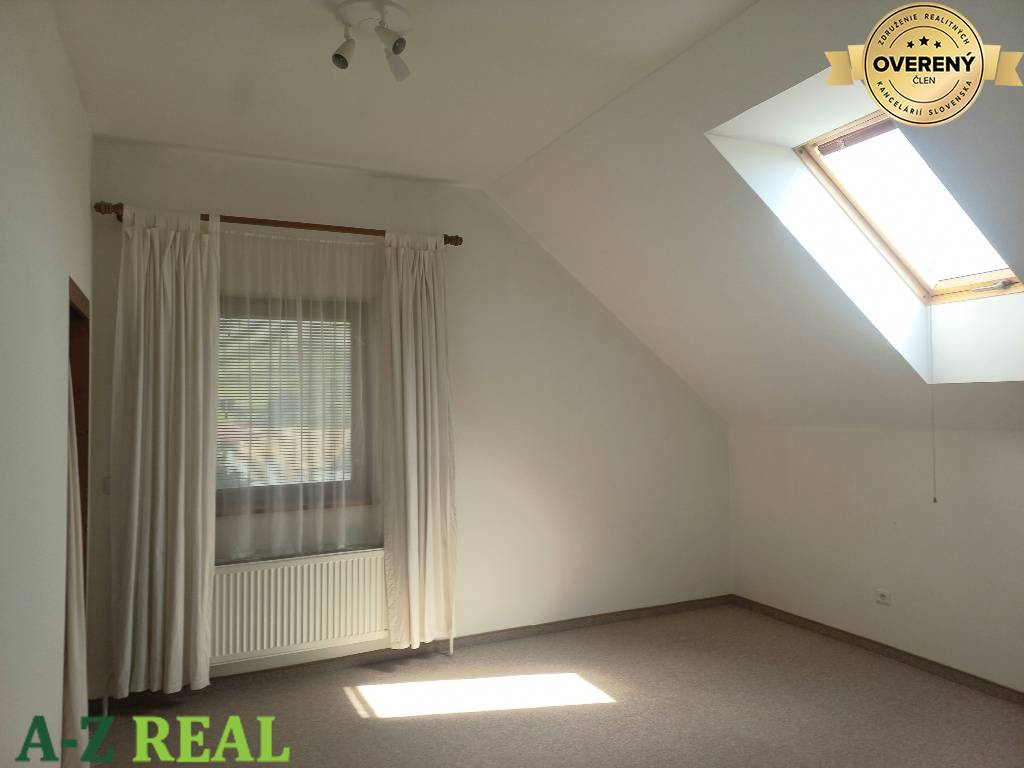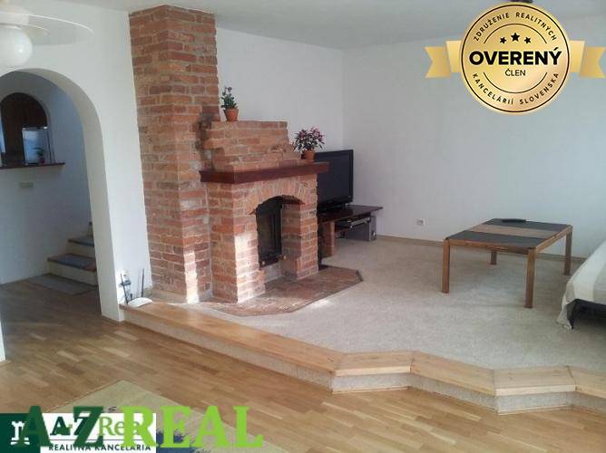 Ponúkame na prenájom 4 izbový rodinný dom v Záhorskej Bystrici. Dom je 4 izbový, rozloha 240 m2, pozemok 236 m². Dom je situovaný v starej časti obce nad kostolom, v tichej časti slepej ulice. Dom je čiastočne zariadený (možnosť dozariadiť) a má tri podlažia: suterén, prízemie a podkrovie. Garáž je spojená s domom spojovacími dverami do vstupnej haly. Na oknách od ulice sú namontované bezpečnostné certifikované fólie, na prízemí sú vnútorné aj vonkajšie žalúzie a v celom dome sú odnímateľné sieťky proti hmyzu. V garáži je automatická brána na diaľkové ovládanie. Kúrenie je centrálne zabezpečené automatickým programovateľným termostatom a termostatickou hlavicou v každej izbe. V suteréne sú dve veľké miestnosti, dve miestnosti na odkladanie vecí, kotolňa a schodište. Na prízemí sa nachádza kuchyňa, vstupná hala, obývačka, toaleta so sprchovým kútom a schodište do podkrovia. V obývačke je postavený rustikálny tehlový krb. Televízor a satelit sú súčasťou výbavy. Vo vstupnej hale je zabudovaná skriňa s veľkým zrkadlom. Podlahy sú tvorené s časti dlažbou, s časti drevenou dubovou podlahou. Schodiskové stupne do podkrovia sú vyrobené z bukového masívu.
