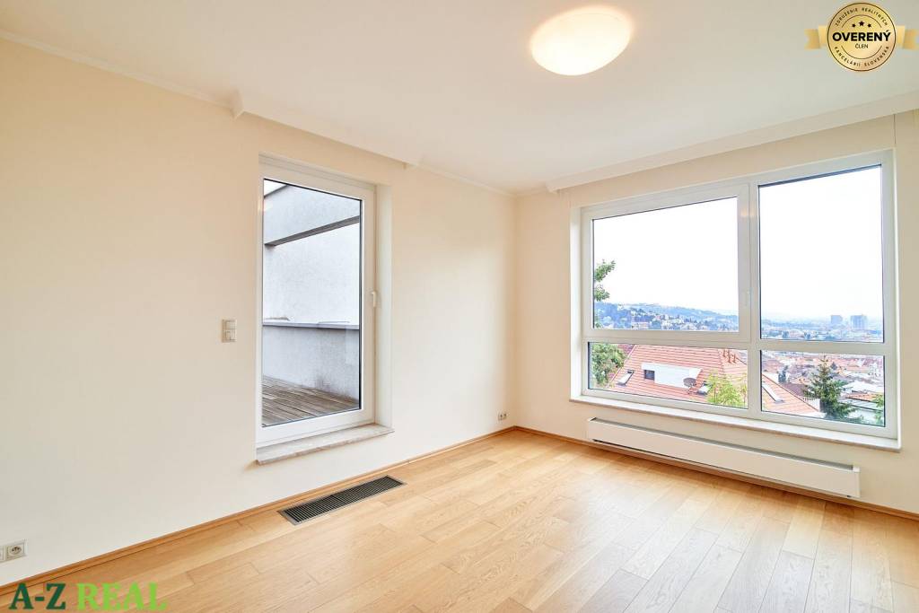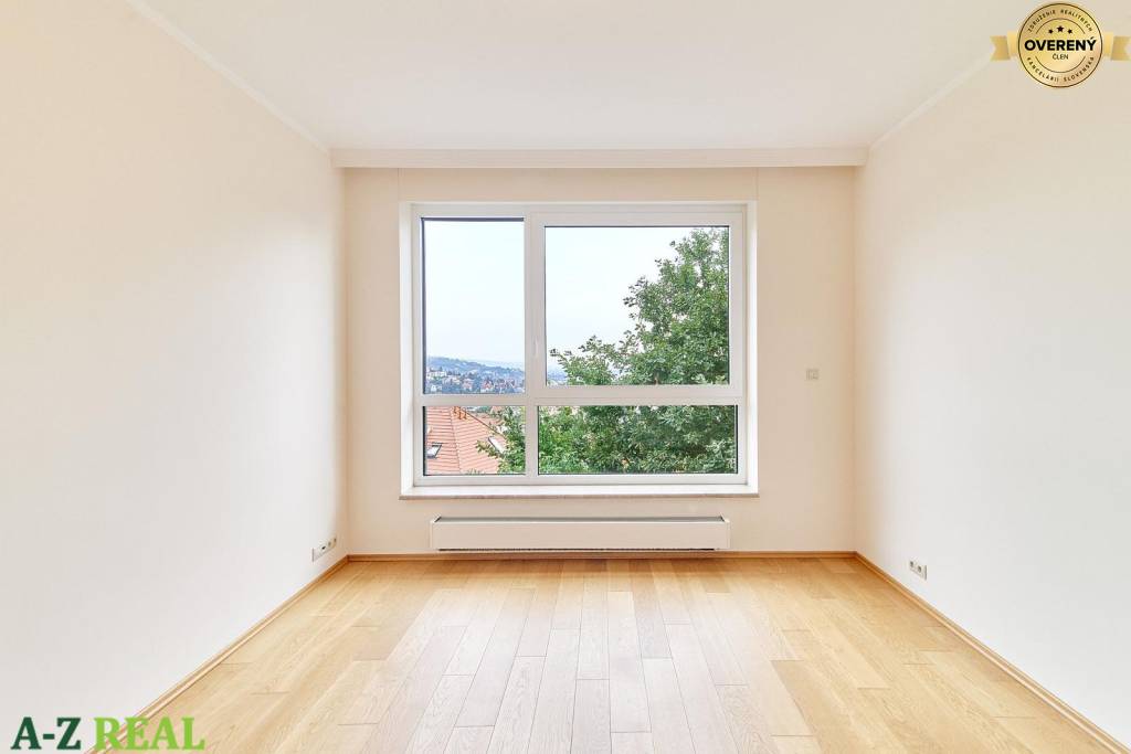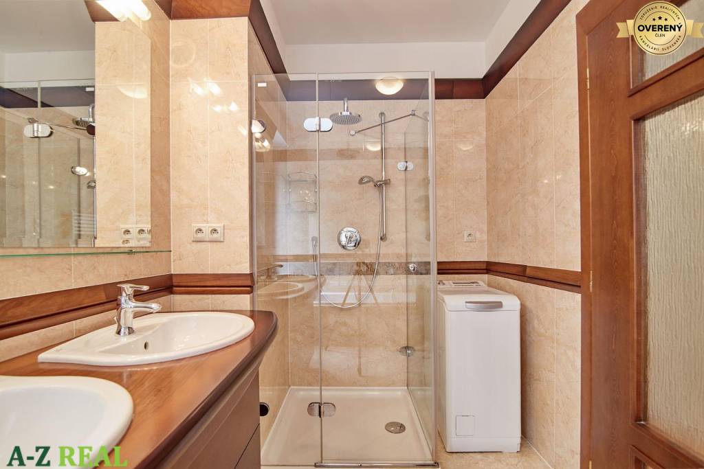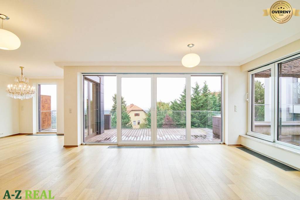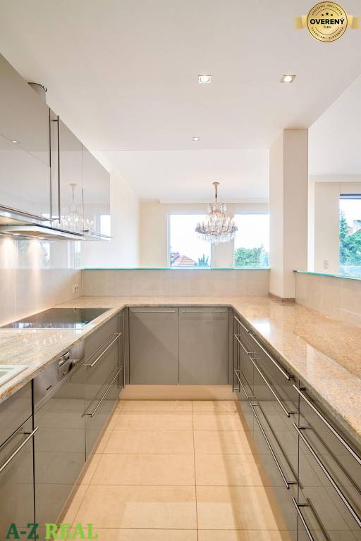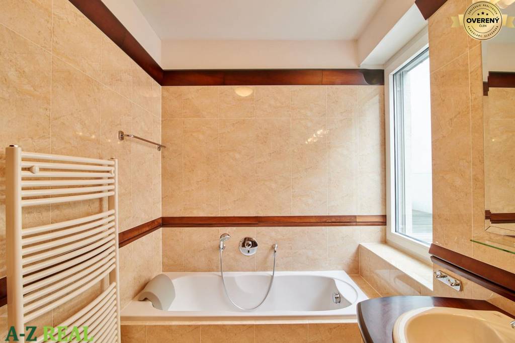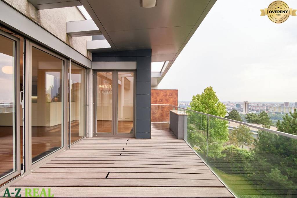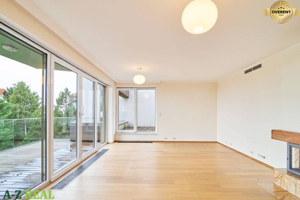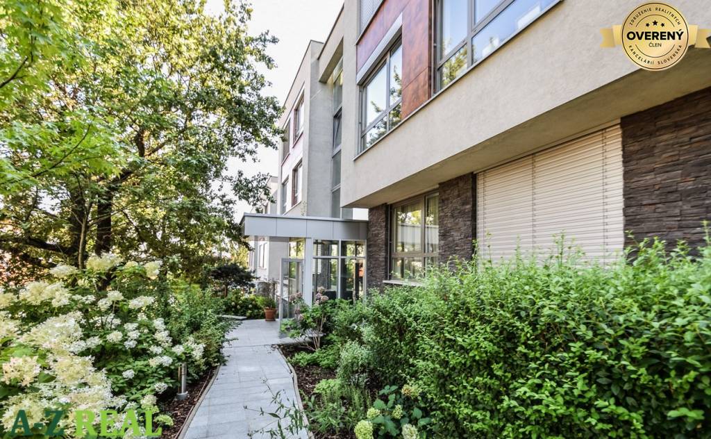Priestranný, slnečný 3-izbový byt rozlohu 138 m2 +3 x terasa vo výmere 60 m2, orientovanú do záhrady, ktorá obklopuje celý komplex. Byt pozostáva z predsiene, otvorenej dispozície obývačky, jedálenskej časti a kuchyne, 2 spální, šatníka, kúpeľne s vaňou a sprchovacím kútom s WC a samostatného WC. Terasa je prístupná z obývačky, v ktorej je situovaný krb. Súčasťou vybavenia sú zabudované kuchynské spotrebiče, klimatizácia, drevené parkety, vstavané šatníky, videovrátnik, 24/7 recepcia a nezávislé plynové kúrenie.