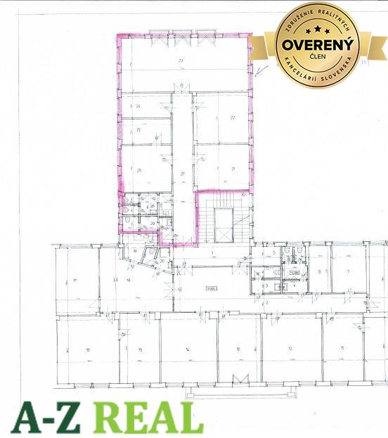 Kancelársky priestor na 3. poschodí 21,75 m2 a 31,00 m2