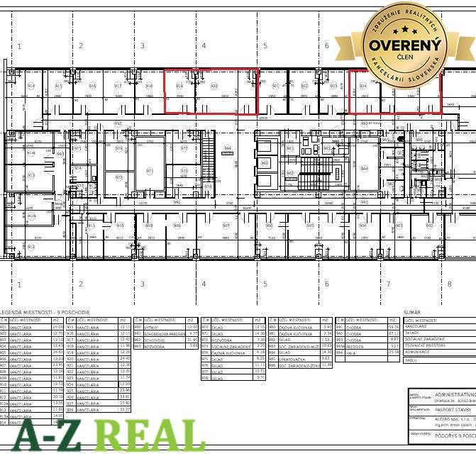 9.poschodie - 50m2 - 3 kancelárie 25m2 + 12,5m2 + 12,5m2, samostatná kancelária 25 m2