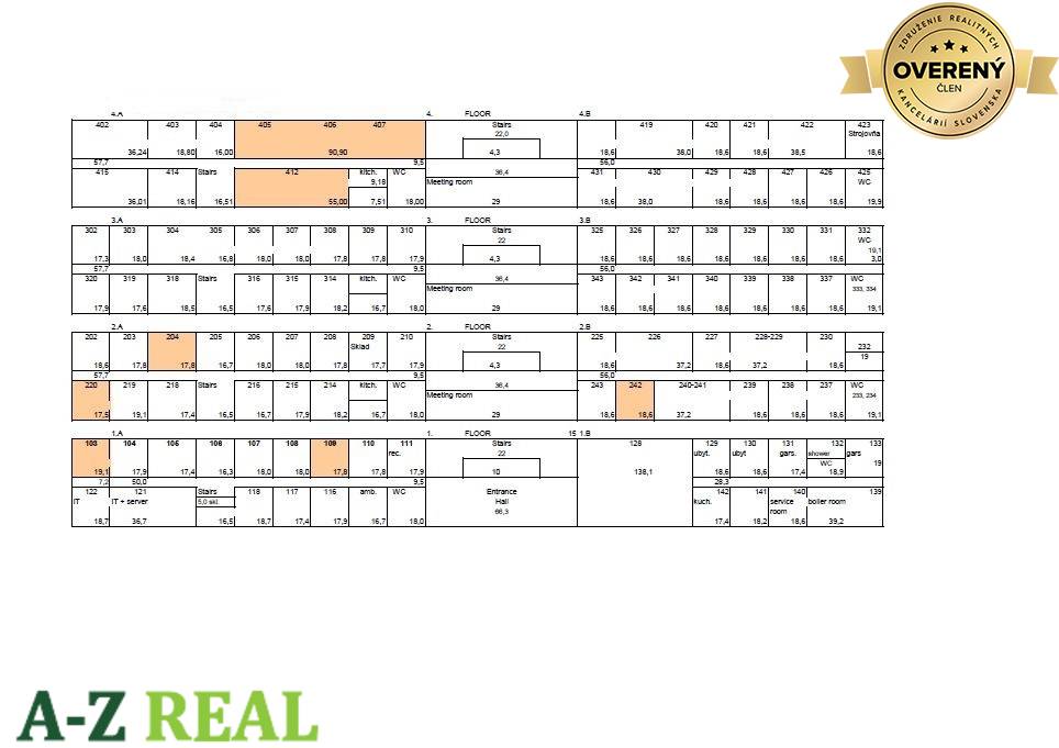 3.posch. - samostatné kancelárie 18m2, 55 m2, 90 m2