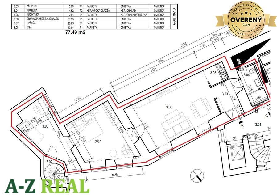 Priestor pozostáva zo zádveria, kúpeľne so sprchovým kútom a toaletou, kuchynského kútu, veľkej miestnosti cez ktorú sa prechádza do dvoch ďalších miestností. Priestor je možné využiť ako kancelárske priestory, alebo byt.