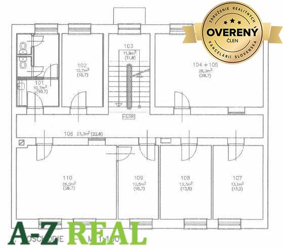 1.poschodie kancelária: 13,1 m2 /č.107/