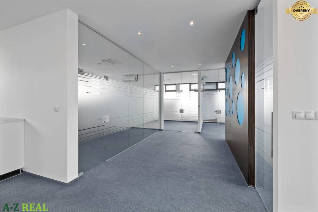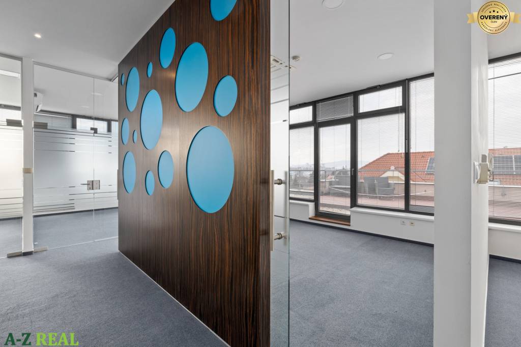 Priestory sa nachádzajú na najvyššom 4.poschodí administratívnej budovy s výťahom. Celková výmera priestoru je 150 m2. Dispozične sú priestory tvorené priestrannou vstupnou recepciou, 3 kanceláriami, zasadačkou, kuchynkou, WC a terasou s podedením s krásnym výhľadom.