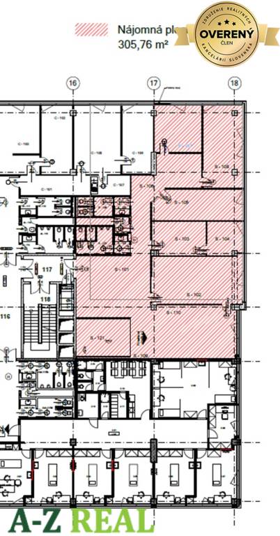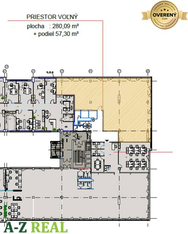 1. poschodie - 305,76 m2, možnosť rozdeliť na 2 priestory so spoločnými toaletami