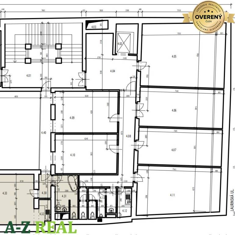 Miestnosti číslo: 4.11 (o výmere 38,92 m²), 4.04, 4.08, 4.12, 4.13 (podiel na spoločných priestoroch o výmere 8,02 m2);