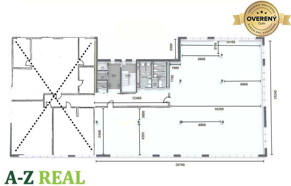 Konečné dispozičné úpravy budú realizované po dohode s budúcim nájomcom.