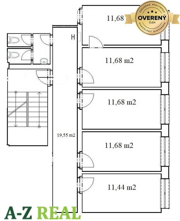 Ponúkané priestory - samostatný celok - sú o výmere 85 m2, tvorí ho 5 kancelárií, chodba, sociálne zariadenie.