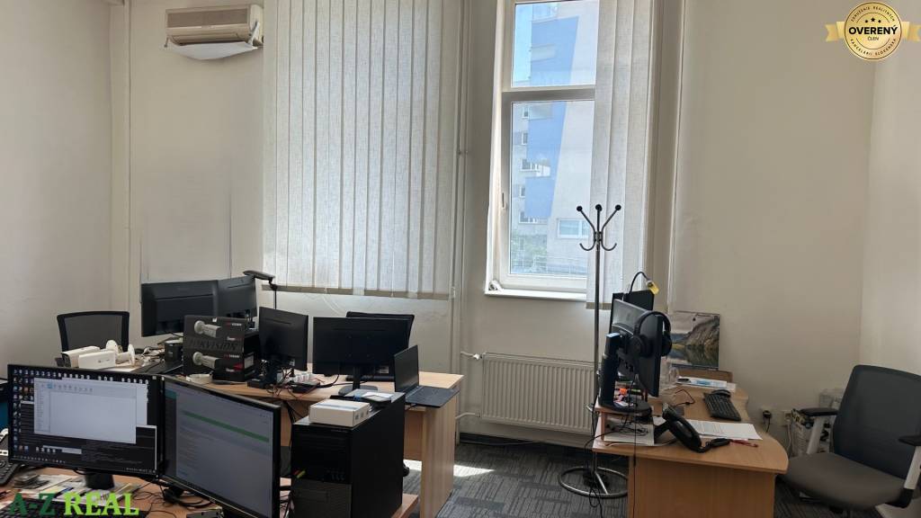 Priestor je čiastočne klimatizovaný s kuchynkou, 6 kancelárií a recepcia . Budova prístupná 24/7 . Vstup na kartový systém . Alarm a kamery. Napojenie na ochrannú službu. Možnosť úprav a parkovania. MHD 30 m.