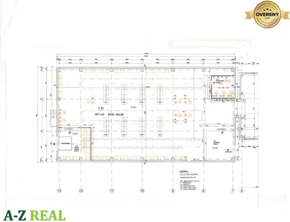 - vykurovaný, klimatizovaný sklad o výmere 621m2,