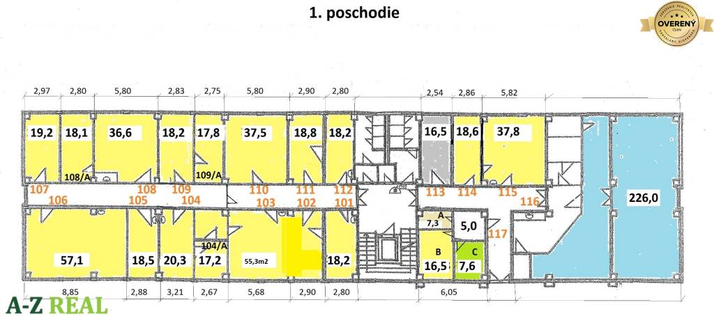 1.poschodie - 73,5 m2 - 1 kancelária + open space /miestnosti 101,102,103 /