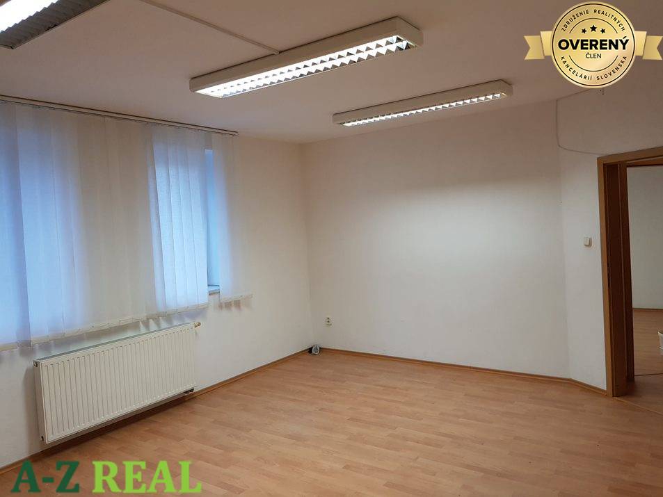 Voľné na prenájom je kancelársky priestor o výmere 85 m2 - samostatný celok, skladá sa z troch nepriechodných miestností, kuchyne, kúpeľne a WC.