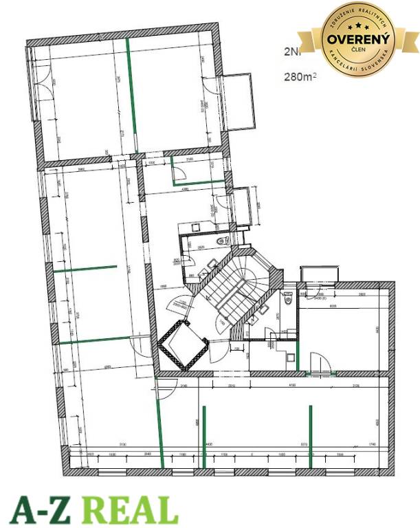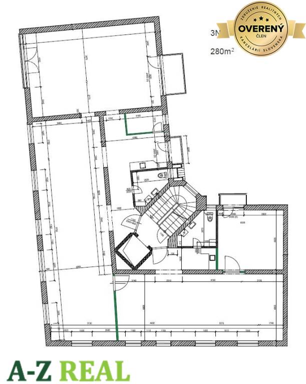 1.poschodie - 280m2 - možnosť rozdeliť na 2 samostatné celky 100 m2 a 180 m2, každý priestor má vlastné wc a kuchynku, momentálne sú priestory prepojené