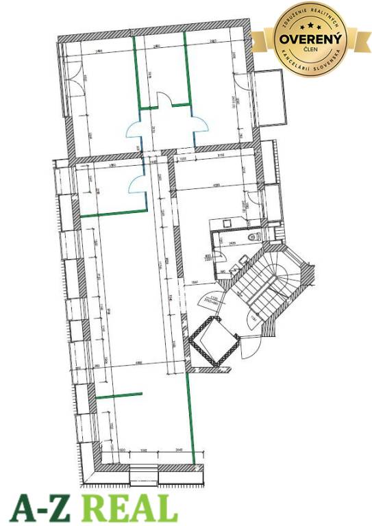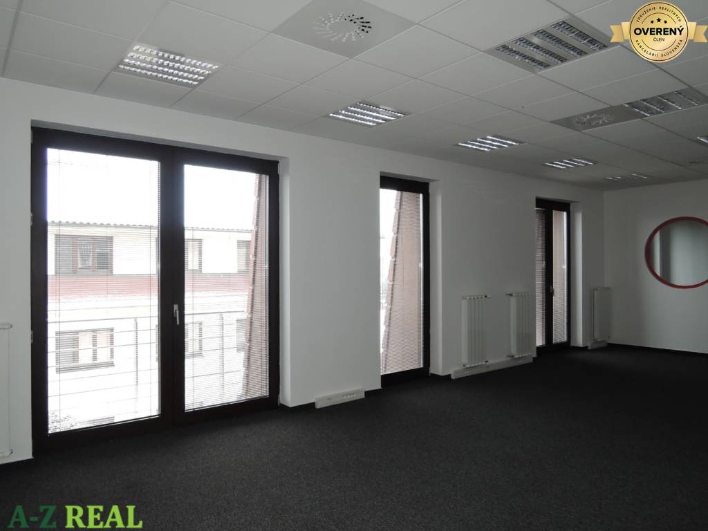 voľné priestory - samostatný celok o výmere 180 m2, 3.poschodie s výťahom, open space, 4 samostatné kancelárie, recepcia s kuchynkou, sklad, soc. zar.