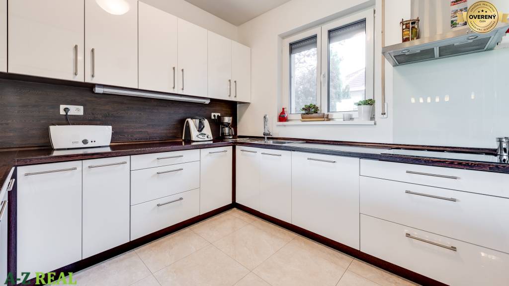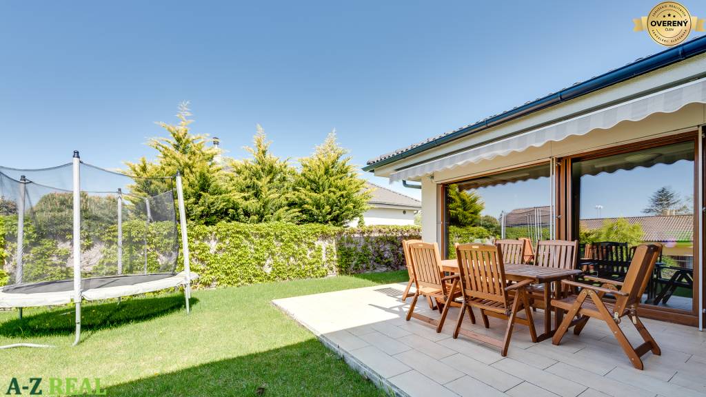 Ponúkame na prenájom rodinný dom v Záhorskej Bystrici v kľudnej príjemnej lokalite, v slepej ulici, v blízkosti lesa. Rodinný dom je 5-izbový s úžitkovou plochou 171,5m2. Jedná sa o bungalov do "L", dispozične rozdelený na dennú a nočnú časť, obývačka + kuchyňa + jedáleň otvorený priestor 70m2, 1 x kúpelňa so sprchovým kútom a WC, 1x kúpeľňa s vaňou, WC a bidetom, samostatný šatník, technická miestnosť, v obývačke krb, východ z obývačky na terasu a do záhrady, kúrenie plynové, kombinácia podlahové + v spálňach radiátory, plávajúce podlahy, vo všetkých izbách a na chodbe vstavané skrine, dve kryté parkovacie státia na pozemku, okná - izolačné trojsklá s bezpečnostnou fóliou, plastové rolety v kuchyni a pracovni, záhrada parková úprava so zavlažovacím systémom.