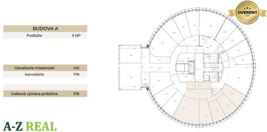 celok 178 m2 na 5.NP v budove B - 5 kancelárií, chodbička, /kuchynka , soc. zar. spoločné na chodbe/