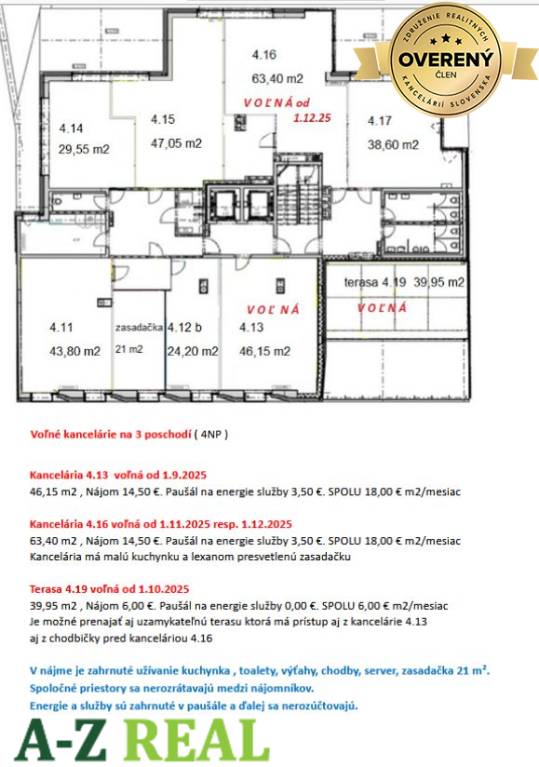 Voľné kancelárie na 3 poschodí ( 4.NP )
