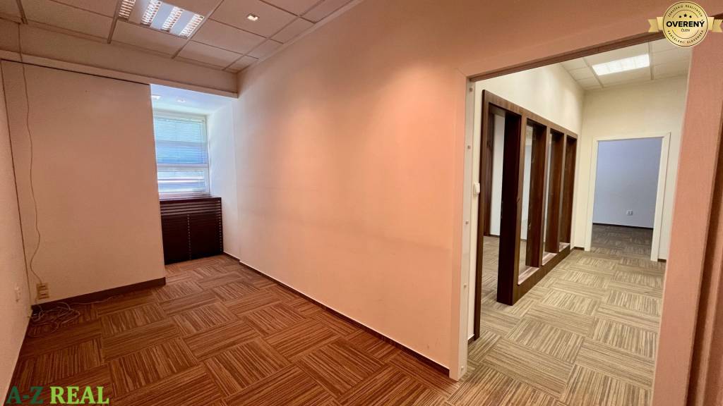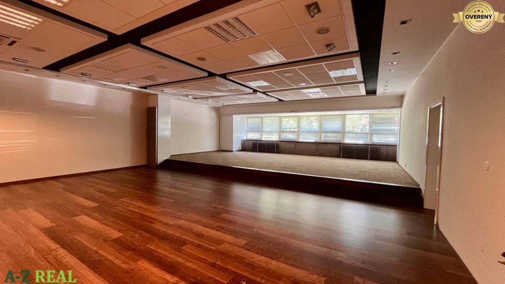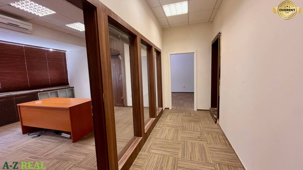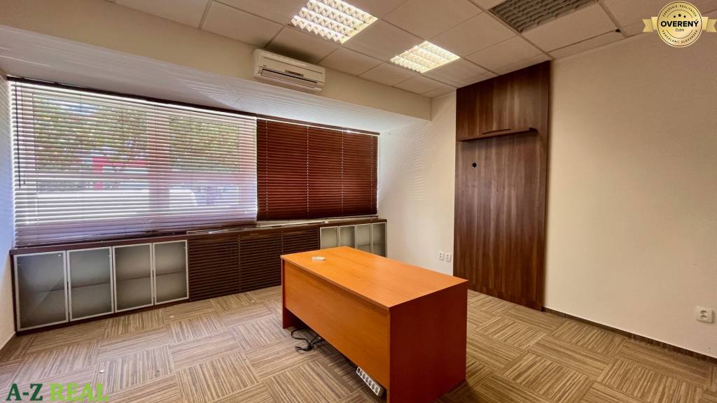 1/ priestor o výmere 189,5 m2 - obchodno-kancelársky priestor sa nachádza na prízemí administratívnej budovy, dispozične je riešený ako veľký open space, 3 kancelárie, kuchynka a vlastné WC so sprchou, možnosť vybudovať aj vstup z ulice,