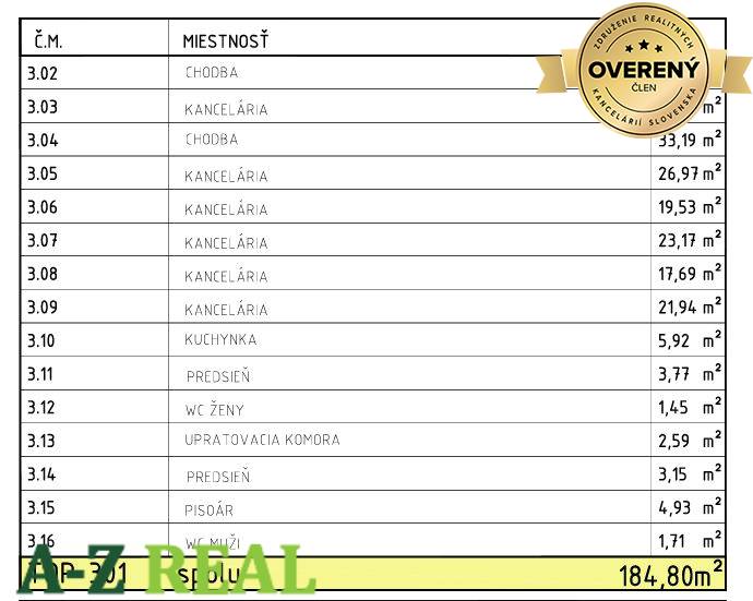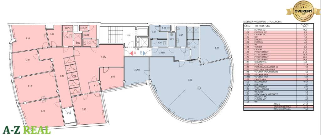 Voľný priestor sa nachádza na 3.poschodí a má výmeru 178,2 m2. Priestor bol rekonštruovaný na zdravotnícke zariadenie - umývateľná podlaha,
