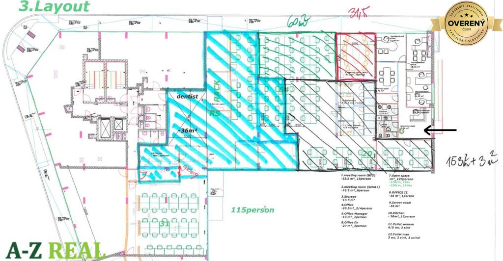 možnosť rozdelenia priestoru na 2 časti podľa potreby nájomcu