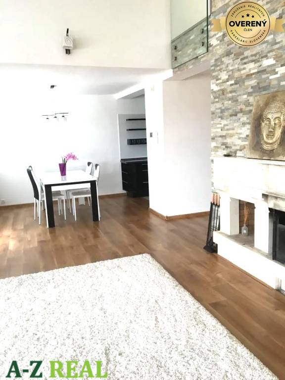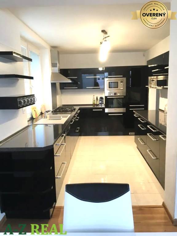 Na 1. poschodí je komplet zariadená kuchyňa, kúpeľňa, 2 izby, veľká obývačka.