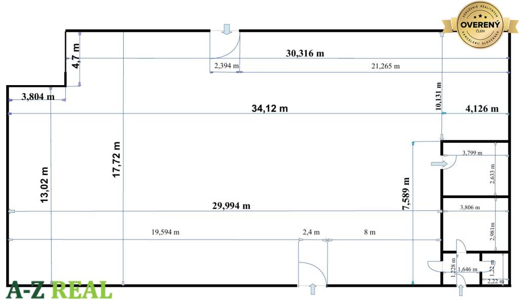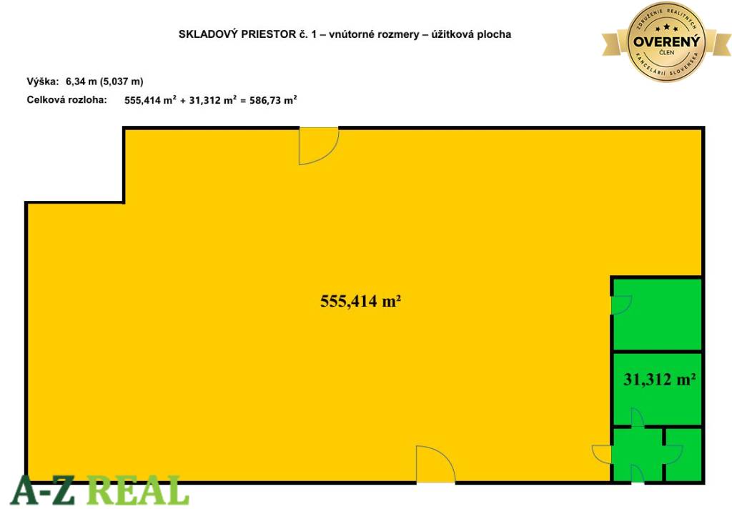 sklad 1 - 586,73 m2, prístup z rampy, výška 5 m, 2 brány, v sklade sú kancelárie a soc. zar.