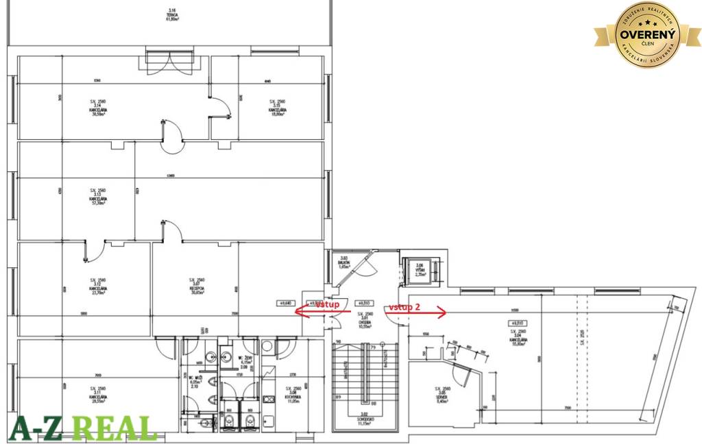 možnosť rozšíriť priestor o veľkoplošnú kanceláriu 56 m2.