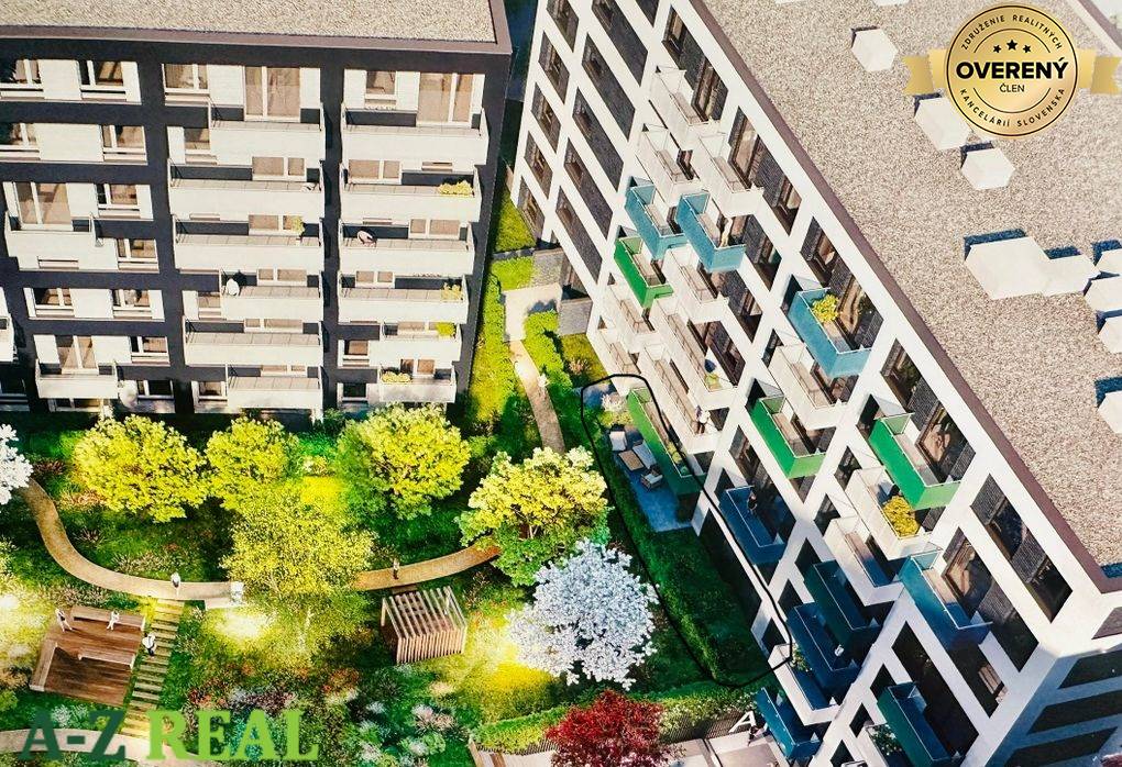 Jednoznačným benefitom tohto bytu je predzáhradka situovaná do pokojného zeleného vnútrobloku s parkom pre obyvateľov rezidenčného projektu.